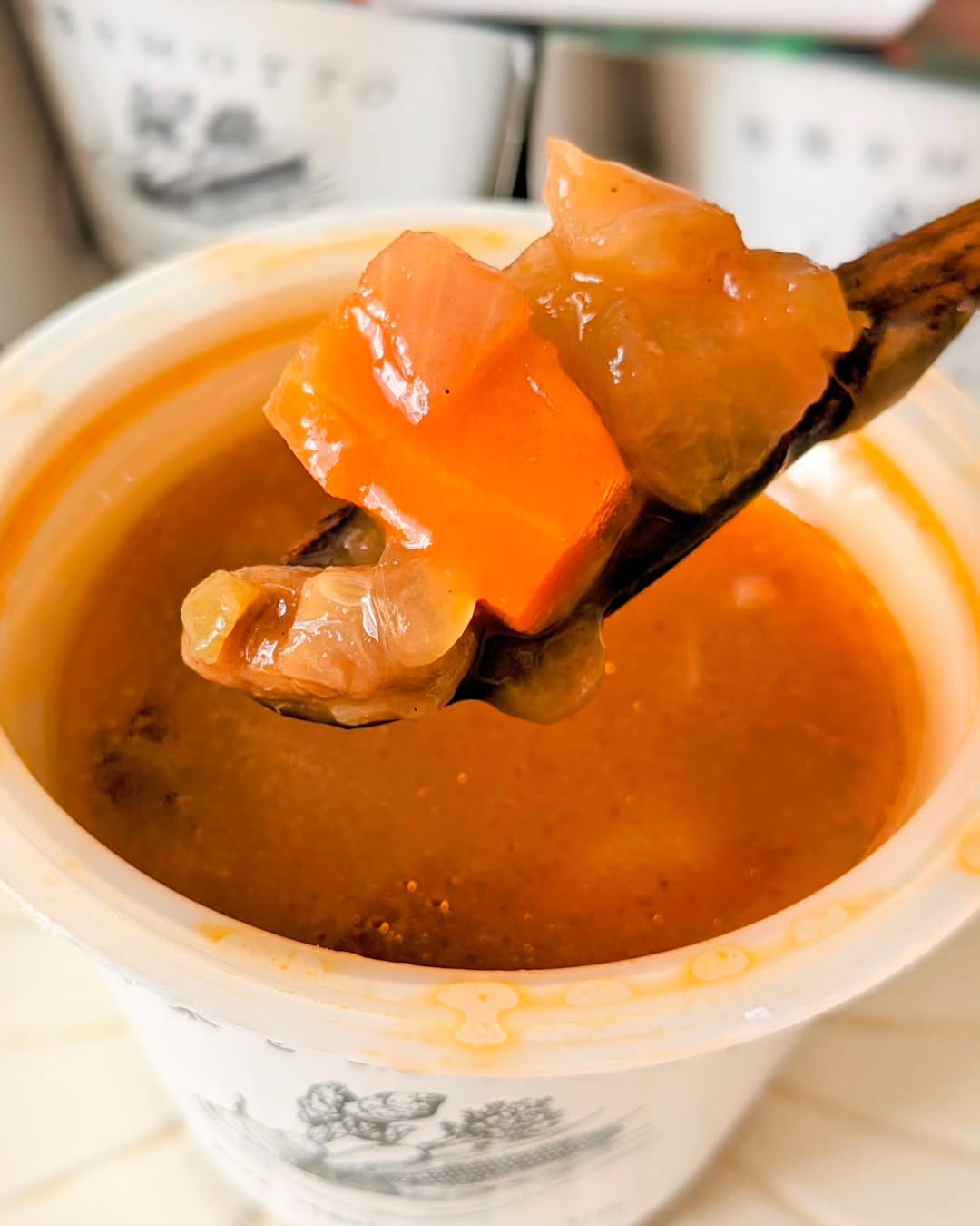 野菜をMOTTO 赤白ミネストローネの食べ比べセットを食べてみました❤🍲🤍 \レンジで約1分! 国産野菜たっぷりの贅沢スープ✨/ 赤も白もどっちも高温高圧調理で、具材は芯までやわらかいから、食べやすくて美味しいです😋 カップのままレンジで約40秒〜1分チンするだけで食べられるから、忙しい日々に助かります♡ パッケージも可愛くて、そのまま食卓に出してもオシャレだし、プラのカップに紙が巻いてあるから、レンチンして取り出す時も熱くなくて◎👍 ❤静岡産「あかでみトマト」で煮込んだ7種野菜と3種の豆が甘み豊かなミネストローネ にんじん、たまねぎ、じゃがいもなどの7種類の国産野菜を大きめにカットし、静岡県産あかでみトマトで煮込んだミネストローネ🍅 金時豆など豆類も3種類入ってます。 トマトベースのスープにゴロゴロ野菜が入ってて、美味しいです。 野菜が大きいに柔らかい🥰 🤍北海道産白いんげん豆と8種の野菜たっぷりとろとろ白いミネストローネ 白いんげん豆をベースに、キャベツ・茄子・セロリ・小松菜・大根・にんじん・玉ねぎ・にんにんくなど8種類の国産野菜をたっぷり使用した、野菜の甘みと豆のまろやかさを生かした塩ベースのとろとろとしたスープ🫘 豚肉も入ってて、たくさん具が入ってるから、最後まで食べ応えがあって満足感があります🫶 朝ごはんにもいいし、ランチにも◎🥰 野菜がたっぷり食べれて美味しいのがなにより嬉しい❤🤍 常温保存できるから備蓄にもオススメです😋 #PR #野菜をMOTTO #カップスープ #野菜スープ #ミネストローネ #食べ比べ #monipla #monmarche_fan