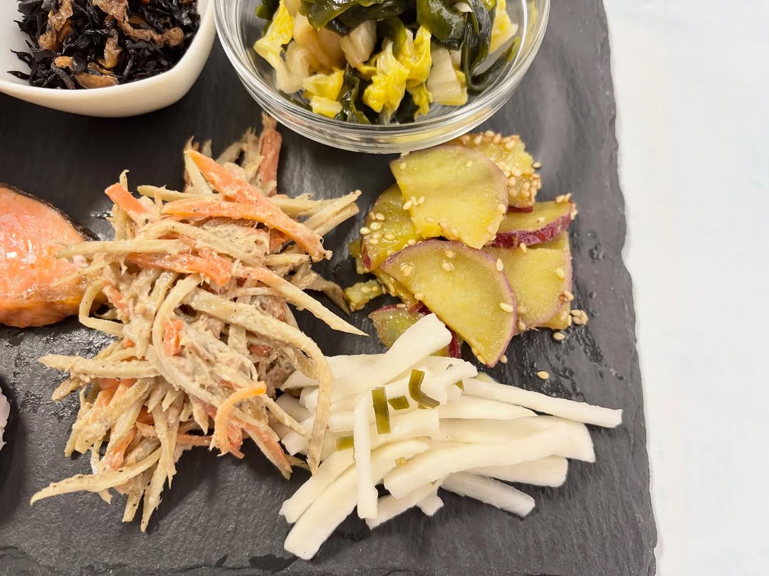 ┈┈ ꕤꕤꕤ ┈┈ 🍙今週のつくりおき ・ごぼうとにんじんのツナごま味噌マヨサラダ ・大根の甘酢漬け ・大学芋 ・白菜わかめのポン酢和え ・冷凍ひじき ・塩鮭 ・お味噌汁 キャベツ、豆苗 緑がないので彩りが💦 さつまいもは以前も投稿した @chii_saienlife さまからの🎁✨ 美味しくいただきました💕 #OnigiriAction #おうちごはんlover #おうちごはん #デリスタグラマー #instafood #インスタフード #ワンプレート #節約ごはん #盛り付け #ごはん #健康的な食事 #ひとりごはん #おうちごはん部 #つくりおき #ワンプレートごはん #food #野菜 #朝ごはん #朝ごはんの記録 #breakfast #PR #野菜をMOTTO #野菜をもっと #野菜スープ #お雑煮 #新商品 #monipla #monmarche_fan