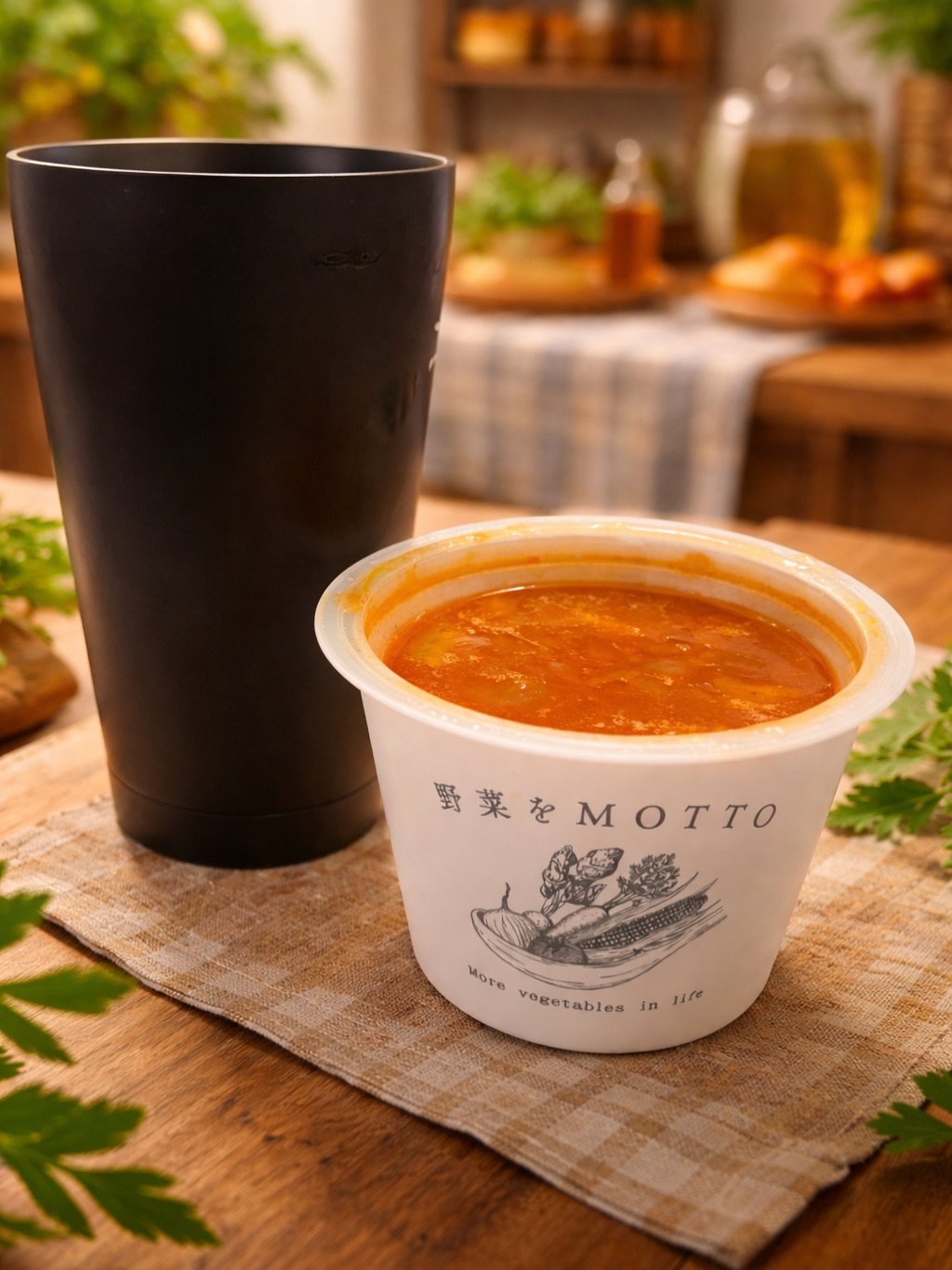2016年に発売したレンジカップスープでは、野菜そのものを食べて欲しいという思いから、具の大きさを実現するため、レンジカップとして発売。