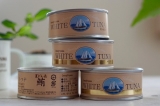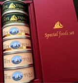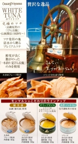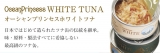 オーシャンプリンセスのツナ缶は日本古来の伝統製法を引き継ぎ、素材はツナ缶では最も相性がよく、高級食材に位置付けられる、国内で水揚げされた一本釣り夏びん長マグロ。漬け油は高級料亭で使用される綿実油、イタリア料理で最高級と言われるエキストラバージンオイルを使用。