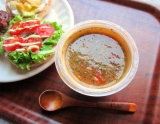 リコピン豊富なあかでみトマトなど7種の野菜と北海道産の豆を使い、チーズでコクを出しました。