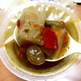 初めて食べたスープなんだけど、ホントに具だくさんで、美味しく&安心の作りに惹かれてお気に入りに 黄色のカップに入ってるのが、そのスープなんだけど モンマルシェの野菜をMOTTO!ブランドから、こだわり厳選野菜のレンジカップ♪ この商品、清水エスパルスの選手たちも食べてるんだって(… 2016/08/21