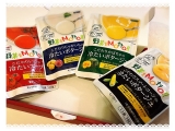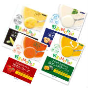 こだわりじゃがいもの冷たいポタージュ、こだわりかぼちゃのクリーミィポタージュ、こだわりトマトの冷たいスープ、こだわりスイートコーンの冷たいポタージュの4種類が2袋ずつ入ったバラエティセットです。