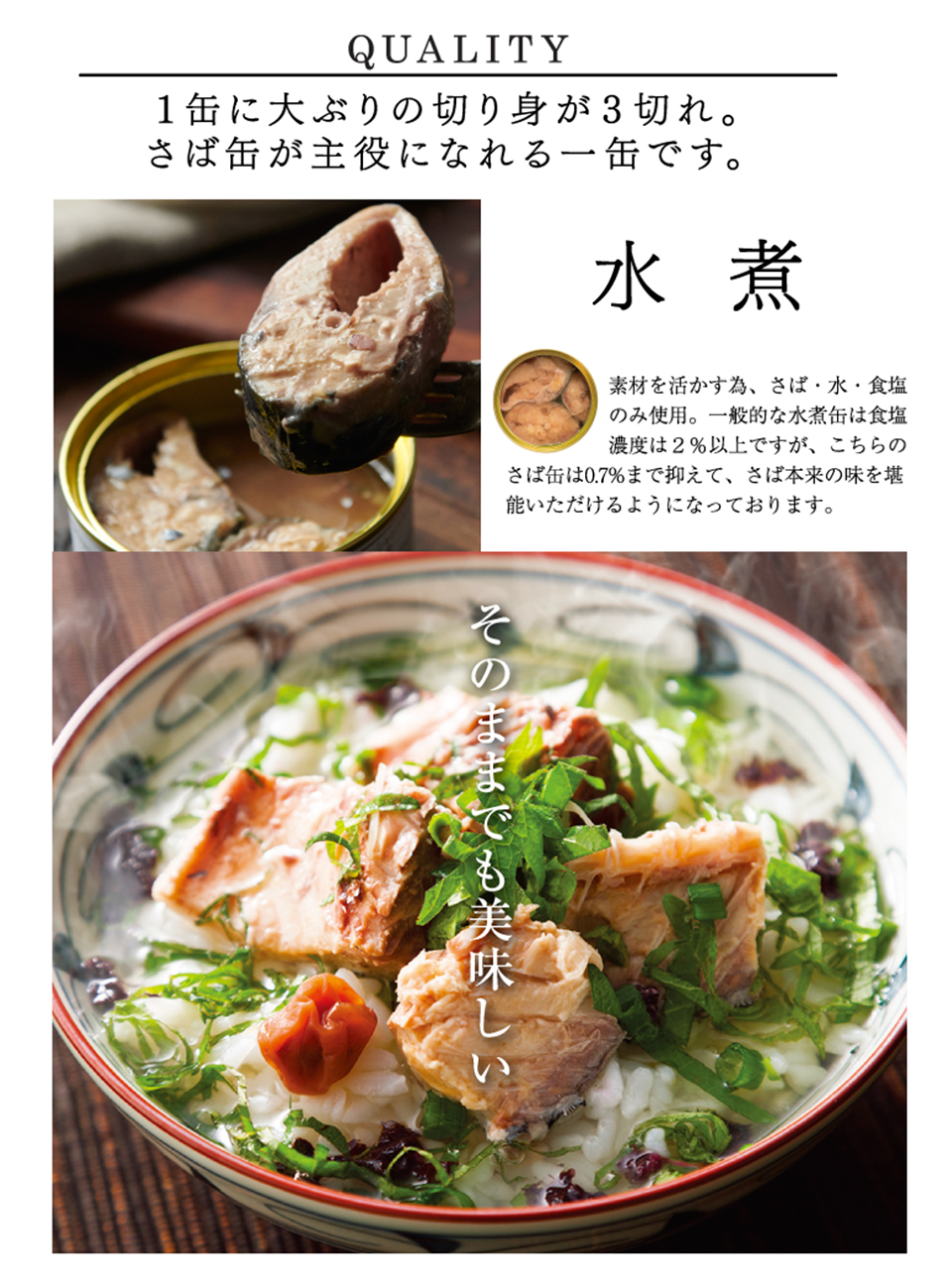 通常の缶詰には使われない大きなさばを使うことで、