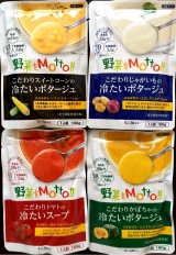 こだわり健康野菜の冷たいスープじゃがいものポタージュ、かぼちゃのポタージュ、トマトのスープ、スイートコーンのポタージュを飲んでみた♪ 2016/08/24