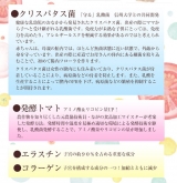 長野県産トマト、国産クリスパタス菌、国産エラスチン、国産コラーゲンを使用。