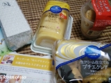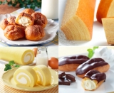 「こんがりプチシュー」「生クリーム仕立てのプチエクレア」「牛乳と卵の手巻きロール・ミルク」「超厚スティックバウム」の計4品。