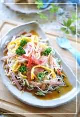 【レシピブログの参加中】いつも 見てくれて ありがとうございます追いがつおつゆ2倍(500ml)を 使って【冷やしそうめん サラダ風】を作ってみました【材料】1人分素麺 1把冷しゃぶ用豚肉 50gハム 2 2015/04/26