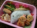 幼稚園の娘のお弁当 今回はイルカのデコ弁当です[るんるん][るんるん] 白菜と豚肉の卵とじ コロッケ アスパラバター炒め ちくわの照り焼き うずらの卵醤油漬け キウイ 娘のお弁当を見たクラスのお友達 青いご飯にびっくりしていたんですって[うれしい顔] でこふりを使うと簡単… 2015/04/26