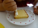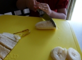 スライスカステラをさらに半分にカット!