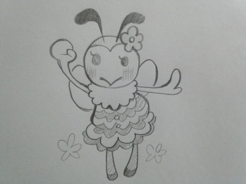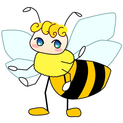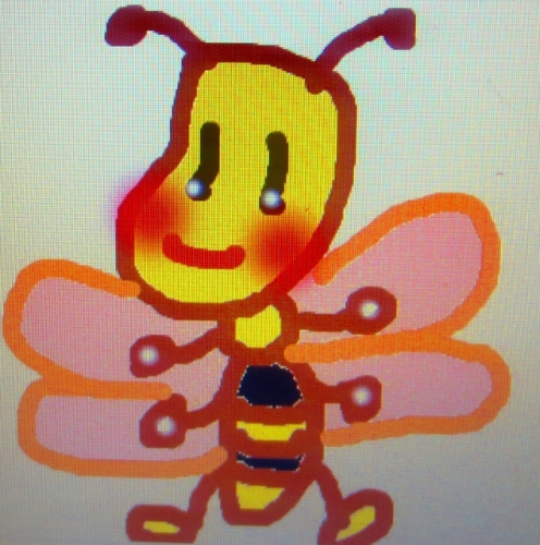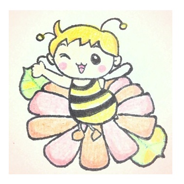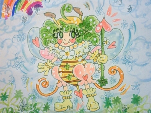みつばちの女の子の妖精さんのイメージでデザインしました♪♪^w^b 四葉のクローバーと組み合わせ*ポップにキュートにカラフルに描いてみました彡 ハートのステッキ&ハート模様の羽根で皆に幸せを運びます+彡 おしりの先の針ハートもポイントです★笑 2013/01/04