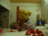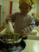 さてさてレポが遅くなりましたが 我が家のクリスマスケーキのデコレーション モントンで焼いたスポンジのやつ 25日に、しーちゃんが頑張ってくれました まずはイチゴのヘタをとって マイ包丁でカット 生クリームを泡立てて これは難関スポンジのスライス ダンナさまと一緒に… 2010/12/27