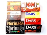 森永ミルクチョコレート、森永ビターチョコレート、ダース<ミルク><ビター>、白いダース、小枝<ミルク>、カレ・ド・ショコラ<フレンチミルク><ベネズエラビター>各1個