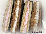 今日のおやつは、エンゼルパイでした(^∇^) 写真はm半分に切って並べたところです ピンクのクリームの方は、12月に発売された、ストロベリーバージョンなのです 2009/01/04
