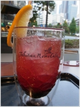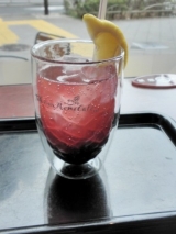 イリドイドを豊富に含むトロピカルフルーツ「ノニ」を使用した健康補助飲料「タヒチアンノニ ジュース」と、ブルーベリーの自家製コンフィチュールをソーダで割った、さっぱりとした甘さのドリンク。