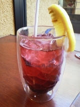 「タヒチアンノニ ジュース」と、ブルーベリーの自家製コンフィチュールをソーダで割った、さっぱりとした甘さのドリンク。
