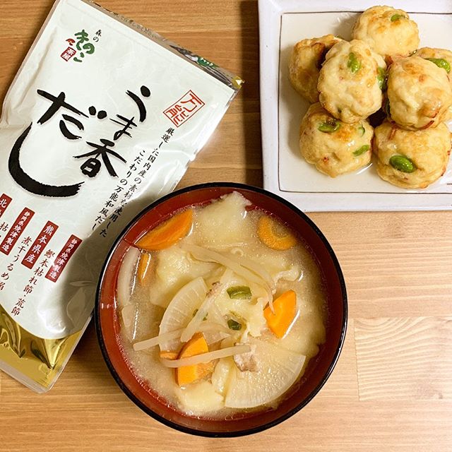 一昨日の夜ご飯🐣 はんぺんと豆腐のふわふわ揚げ ~和風だしあんかけ~ 前日の豚汁の残りを使って 大っっ好きな「だご汁」をつくりました😆💗 お出汁は両方とも【うま香だし】を使いました💗 厳選した国内産の素材を使用した こだわりの万能和風だしです^ ^ これをポイッと入れておくだけで本格的なお出汁がとれて、すごく美味しかったです🌟 . . . #ハロウィン2019 #仮装だらけ #賑わいはんぱない #毎日ごはん #夜ご飯 #手作りごはん #同棲ごはん #健康ごはん #稲葉ちゃんレシピ #クッキングラム #デリスタグラム #時短料理 #同棲カップル #節約ごはん #料理初心者 #料理勉強中 #料理写真 #食卓#献立 #だご汁 #はんぺん#豆腐 #和風だし #万能だし #厳選素材 #うま香だし #だしパック #森のきのこ倶楽部 #monipla #morinokinoko_fan