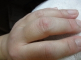 ついに 切れちゃいました 前から怪しかった 関節部分 この写真で解るでしょうか 中指の第二関節が『ビリッ』といっちゃいました 指先は平気なのになぜ 多めにヌリヌリして 手袋付けて オヤスミしてみます 豆腐の盛田屋ファンサイト応援中 2010/12/02
