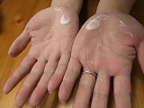 豆腐の盛田屋さんの豆乳はんどくりぃむ めちゃも手 我が家みんなで使っています♪ 肌の弱い我が家の男子たちに大好評です♪ ちなみに息子の手 そして、ぼろぼろの夫の手 豆乳はんどくりぃむ めちゃも手は少量でスルッとよく伸びます 塗った後は、潤うのにサラサラ… 2013/03/06