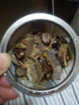 村田園「万能茶(選)」は16種類の 天然由来の原料をブレンドした健康茶 すごく色々入ってて身体に良さそう! これを1リットルのお湯に入れて、 5、6分煎じたら出来上がり 色も綺麗 冷やして飲むつもりだったけど、 いい香りがしたので 温 2012/08/13