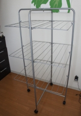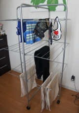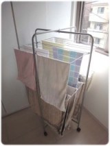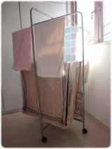 わが家、私のふくがあふれてまして 干す物盛りだくさん( 一一) 干すスペースがほしくてこれを買ってみたのですが 重たいものを干すと曲がるそして、置く場所が邪魔 結局、ベランダにいるのですが、直すスペースが無いと … 2011/07/19