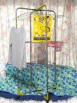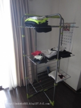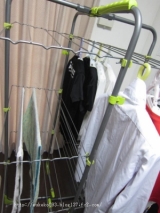 洗濯物が乾きにくい季節がやってきました室内で干す機会が増えてきます 室内物干しはタオルが10枚ほど干せる物をひとつ持ってました さすがにタオルは室内で干せるけどハンガーものは外干しのまんまで乾かずじまい かといってハンガー干しもできる室内物干しは大ぶりで邪魔になるし、面倒くさそう 困ってました… 2013/11/02