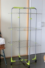 そんな悩みを解消してくれるのが、待望のNewモデル!! フィネス3段モービルタワーです。従来の3段モービルタワーを細部にわたりバージョンアップした革新的な室内物干しです。今まで気に入った室内物干しがないとお嘆きの方にこそ使っていただきたい製品です。必ずご満足いただける製品と思います。
