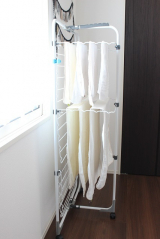 マンションやアパートにお住まいの方にも好評を頂いている省スペース、大容量の直立型室内物干し、ヒルズ・フィネス3段モービルタワーをモニターしてください!
