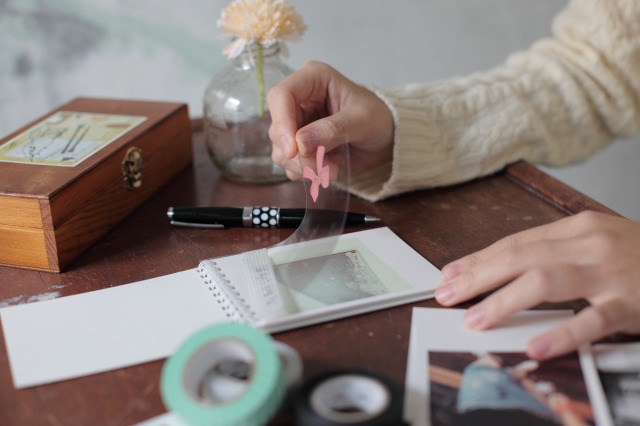 写真カードと透明のフィルムが交互になった