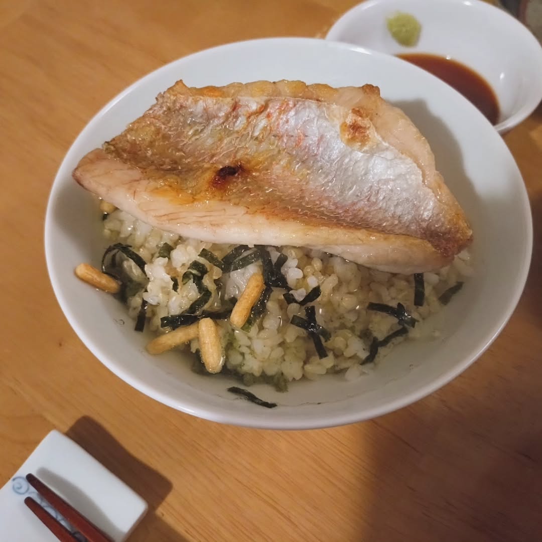 夫がレンコ鯛とホウボウをさばいてくれたのでお刺身とお茶漬けと粗汁にして魚尽くし定食に♡