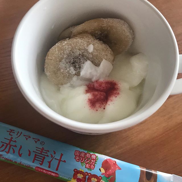 #マイナチュラ #モリママ #フルーツモリンガ #青汁 #赤い青汁 #monipla #mynatura_fan ヨーグルトに混ぜて朝ごはんに。 イチゴ味でパクパク食べてくれました☺️💕