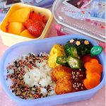 𖠇 こんばんは。 なかなか載せられていないので。 お弁当を…。 鶏胸肉をスティック状にして下味を付けてフライにしました。 柔らかくて美味しいみたいです܀ . 𖠇ふりかけごはん 𖠇鶏胸肉のフライ 𖠇オクラのお浸し 𖠇パプリカ入りたまごやき 𖠇ブロッコリー・ミニトマト・人参 𖠇いちご・柿 . . #幼稚園弁当 #年中弁当 #年中さんのお弁当 #毎日のお弁当 . . . 少し前から飲んでいる赤い青汁٭ ビタミン・葉酸・カルシウムなどのたくさんの栄養素を含んでいます。 . アレルギー成分27品目不使用。 保存料・着色料も無添加。 小さなお子様にもオススメです。 お野菜嫌いさんにぜひৣ . 娘はテンション高く混ぜ混ぜして喜んでおります♬ . . . #マイナチュラ #モリママの赤い青汁 #フルーツモリンガ #モリママ #赤い青汁 #monipla #mynatura_fan 2019/12/01