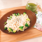 🍳🍳 \ おうちごはん♡ / ☆︎.。.Menu #明太クリームチーズうどん #ホット青汁 冷凍してたホワイトソースに 明太子ととろけるチーズを加えて うどんと混ぜ混ぜ🫕 彩にブロッコリーを乱雑に添えました🙋♀️笑 レンジ完結の手抜き料理です🙈 ⌒✿*゚ この日の青汁は 2020/12/19