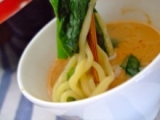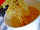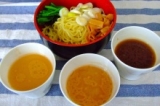 我が家に有限会社中橋製麺所様が作っている海老塩、味噌、和風の3つのつけ汁&つけ麺が届きましたヾ(@^(∞)^@)ノ 製麺所から直接送っていただいた麺はいつもの麺よりコシがあってもっちりした感じ 3人前だから、1回づつ食べてもよかったんだけど、つけ麺食べ比べということで、スープを食べ比べて… 2011/03/02