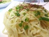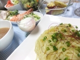 【常陸麺づくり本舗 なかはし】さんの海老塩つけ麺を夕食にいただきましたこのつけ麺は麺はつめたく冷やし、あったかスープでいただきます麺は太すぎず細すぎずつけ麺にはちょうど良い太さ、夕食に麺類だとちょっと物足りないかしら?と思ったのですが麺200gでたっぷり、2人分2玉を茹でたのですが、多すぎる程で… 2012/08/08