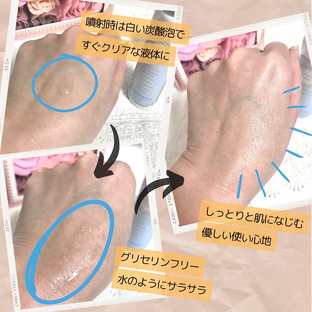 オイル・グリセリンフリーなのでテクスチャーはサラサラ、とろみは全くなし✨