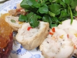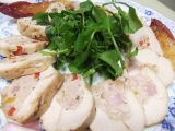 今日は〇回目の結婚記念日、昨年の今日は私としたことがこの日を間違えていました今年はバッチリ、大丈夫でしたよ、良かったメインは鶏胸肉のバロティーヌ風中身は豚ひき肉、ハム、チーズ、パプリカ2種、インゲン、パセリなど本当はね、もっともっと作りたいの、でも何しろ二人これが限度です付け合わせ… 2012/01/13