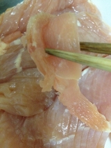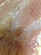南部どりを 取り扱う アマタケさんの 鶏ムネ 細切り肉を 使用させて いただきます イメージ 4 細切り肉ですので、 ムネ肉を べたぁっと まな板の上に広げ、 垂直に 包丁を入れたような 切り身状態 幅が 細いですね 厚みは 5mm程度でしょうか? 自分で 包丁で切… 2014/05/26
