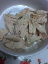さて今日は美味しいワインを頂いたのでとってあった㈱アマタケさんからいただいた(いただいてばっかり(^^♪)南部どり「ふんわりサラダチキン」を使う 2014/11/09