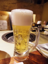 この日は仕事で遅くなってしまい、ごはんを食べて帰ることにしました。次の日がお休みでしたので、がっつり焼肉にしました。最後の1席に滑り込みセーフでした。この後の方は断られていたのでラッキーだったようです。もちろん最初はビールで。