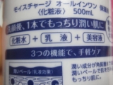 使わせていただいています『モイスチャージ』オールインワン保湿液見よ、この大容量500mlって…ペットボトルですから使い始めて2ヶ月朝、風呂上がりと使うけど全然減らないそして何より魅力的なのが“オールインワン”これ1本で化粧水+乳液+美容液トロッとした肌触り特に、風呂上がりは肌が吸収するのを実感… 2016/01/14