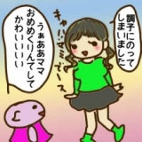 まねしたい!!とビューラーをもって必死に鏡に向かってました。
