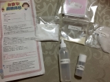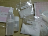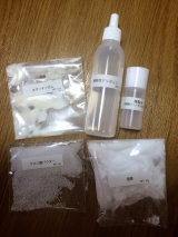 【★手作りキット★炭酸ジェルパックキット】 お家で簡単に炭酸ジェルパックが出来ます 【商品説明】 とっても人気の炭酸ジェルパック。 美肌、エイジングケアとしてエステでしてもらうのは、ちょっと高くて・・・ それに、時間がなかなかない・・・ それでも炭酸パックがしたい! という方のためのキット「お家で炭酸美容。炭酸ジェルパックキット」! お手軽に、お家で手作り炭酸パックが出来ます。 どうぞお家で炭酸美容を楽しんでください。 ■キット内容■ パック1回分程度 ○ 重曹 ・・・10g [成分/炭酸水素Na] ○ キサンタンガム ・・・0.3g ○ グリセリン ・・・11g ○ 精製水 ・・・ 4g (防腐剤 フェノキシエタノール入り) ○ クエン酸 ・・・ 4g ■作り方■ 1.容器に、重曹、キサンタンガム、グリセリン、精製水を入れて混ぜます。 この状態でジェル状にしたいので30分程度置いて下さい。 2.①の状態を30分くらいおいたらジェル状になります。 3.②に、クエン酸を入れて数回混ぜて完成です。 ★すぐに発泡し始めますので、パックして下さい。 ★手作り炭酸ジェルパックは1回分ずつ、使う直前に作ります。 ■使用方法■ きれいに洗顔をした後ご使用下さい。 (顔を水で冷やすと、炭酸が発生しやすくなります。) 炭酸ジェルパックが出来たら、すぐに顔全体に1センチ程度の厚さで塗ります。 そのまま15分~20分程度おいて、濡れタオルなどでパックを軽く拭き取り、お水などでやさしく洗い流して下さい。 その後は、いつものようにスキンケアをして下さい。 ★有効成分を加えてもOKです。有効成分を一緒に加えると、さらに効果的です。 炭素の働きで、有効成分がお肌に浸透しやすくなります。 ※有効成分を加える場合は、配合上限を厳守して下さい。 【ご注意】 □作ってすぐに発泡し始めますので、パックして下さい。 □手作り炭酸ジェルパックは1回分ずつ、使う直前に作ります。 □炭酸ジェルパックをのせて、チクチクしたり、赤くなったりすることがありますが、通常パックを流してしばらくすると元に戻ります。万一、強い痛みの場合や刺激が長く続く場合には、使用を中止してください。 □お肌に合わない場合はご使用おやめ下さい。
