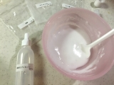 1.容器に、重曹、キサンタンガム、グリセリン、精製水を入れよく混ぜます。その状態でジェル状にしたいので30分程度置いて下さい。