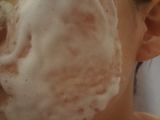 炭酸ジェルパックが出来たら、すぐに顔全体に1cm程度の厚さで塗ります。