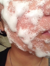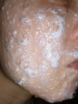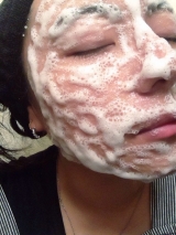 炭酸ジェルパックが出来たら、すぐに顔全体に1cm程度の厚さで塗ります。