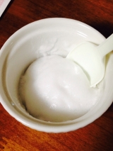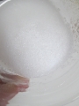 1.容器に、重曹、キサンタンガム、グリセリン、精製水を 入れて混ぜます。その状態でジェル状にしたいので30