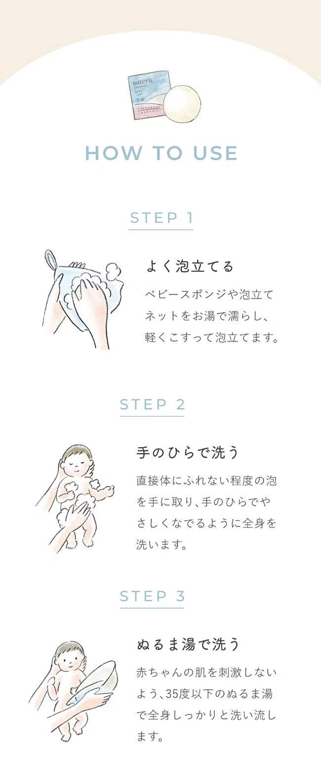 「mitera organics baby soap」をお試しいただき