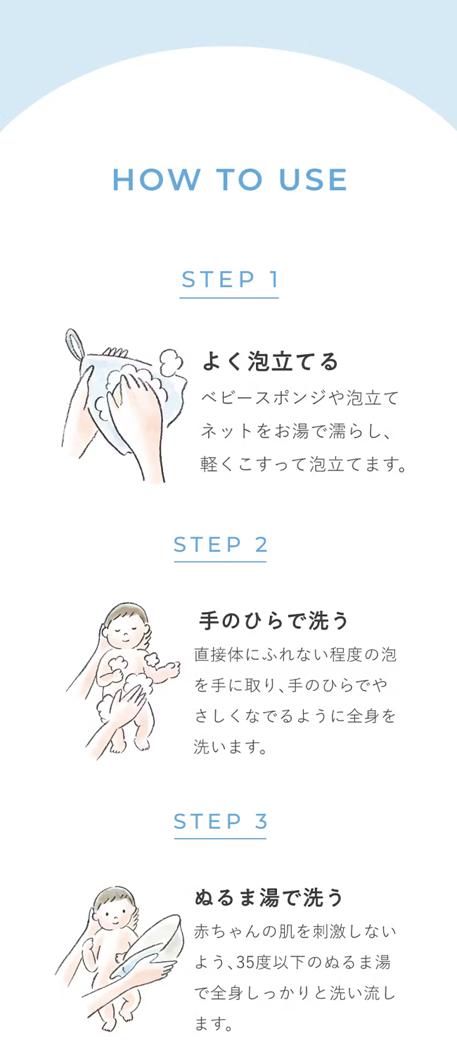 赤ちゃんのお肌をおなかの中にいるときのようにやさしく守ってくれる。11種類のアミノ酸と天然保湿成分セラミドが赤ちゃんのお肌を保湿&バリア