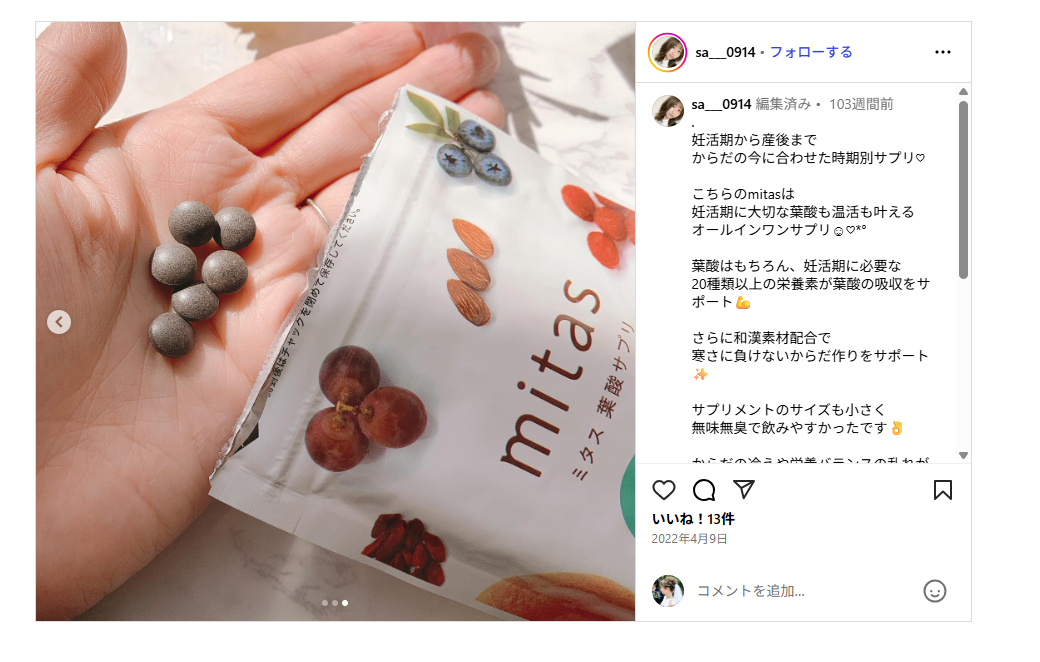 #mitas葉酸 #産後サプリ #授乳期サプリ
